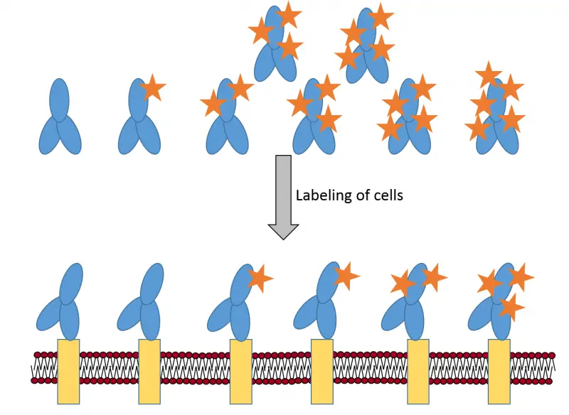 - we have proven that fluorescence labeling deteriorates antibody affinity and consequently the average degree of labeling (DOL) of the cell-bound antibody fraction is lower than that of the stock.